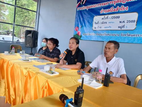 สำนักงานพัฒนาชุมชนอำเภอแก้งสนามนาง เข้าร่วมการประชุมสัญจรชุดปฏิบัติการตำบล (ก.ต.) ตำบลบึงสำโรง ครั้งที่ 4/2569 ประจำเดือนเมษายน 2569 ณ บ้านหนองปรือ หมู่ที่ 5 ตำบลบึงสำโรง อำเภอแก้งสนามนาง จังหวัดนครราชสีมา ในโอกาสนี้ สำนักงานพัฒนาชุมชนอำเภอแก้งสนามนาง ได้นำเสนอและชี้แจงแนวทางการดำเนินงานพัฒนาชุมชนที่สำคัญต่อที่ประชุมและผู้นำชุมชน อาทิเช่น การน้อมนำแนวพระราชดำริฯ ปลูกผักสวนครัว เพื่อสร้างความมั่นคงทางอาหาร: สนับสนุนให้ครัวเรือนในบ้านหนองปรือและตำบลบึงสำโรง พึ่งพาตนเองได้ในสภาวะเศรษฐกิจปัจจุบัน, การขับเคลื่อนกองทุนแม่ของแผ่นดิน: เน้นย้ำกระบวนการป้องกันและแก้ไขปัญหายาเสพติด โดยใช้พลังภาคประชาชนในการเฝ้าระวังและสร้างชุมชนเข้มแข็ง และการแก้ไขปัญหาความยากจนด้วยระบบ TPMAP เป็นต้น