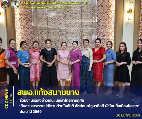 สพอ.แก้งสนามนาง ร่วมงานแถลงข่าวเดินแบบผ้าไทยการกุศล ”สืบสานพระราชปณิธานด้วยใจภักดิ์ อัตลักษณ์ภูษาศิลป์ ผ้าไทยถิ่นเมืองโคราช“ ประจำปี 2569